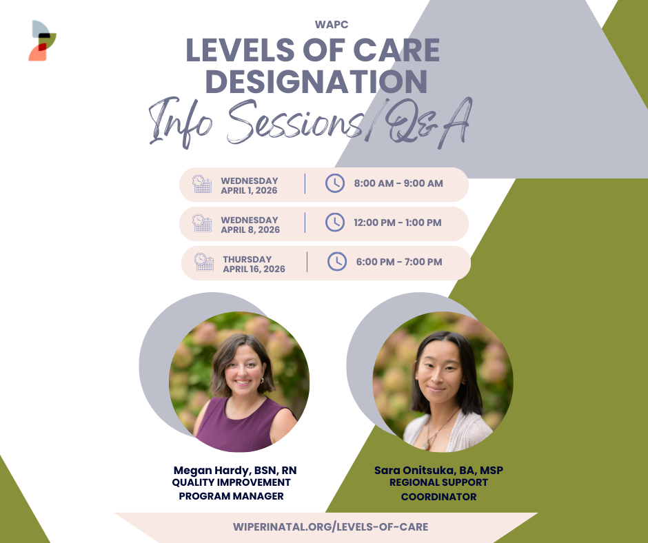 If you want to know more before we launch, join us for an informational session covering the LoC Designation process. This is a great opportunity for hospitals to get a high-level overview of the value and importance of designating Maternal and Neonatal Levels of Care, learn the timeline for our designation cycle, and get your questions about the process answered.